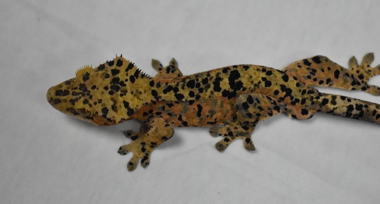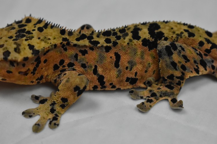 Dynamite Morph: Superdalmatian, inkspot, clusterspot, red based Breeder: Lilot Geckos Parents: Hodor x Olga Parents Olga Lineage from Hodor (Mr Spotty Lineage)