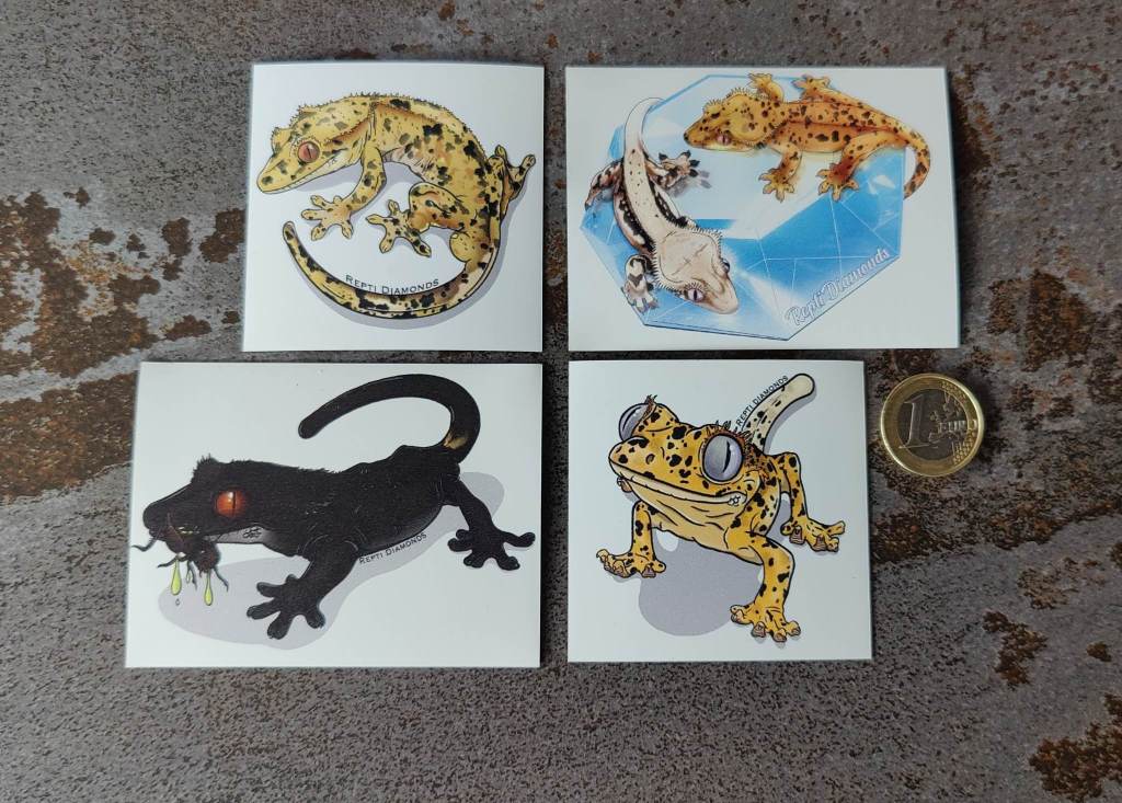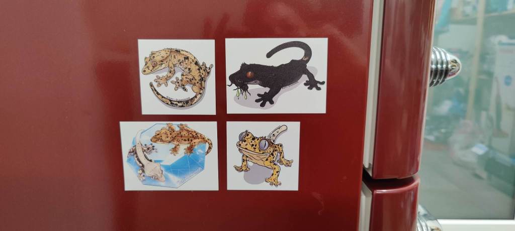 Magnets Available: dark crested gecko eat cricket, superdalmatian circle, superdalmatian cute, logoSizes:Logo and dark crested gecko: 9 x 6.5 cm Superdalmatians: 6.5 x 6.5 cmPrices: €4/piece