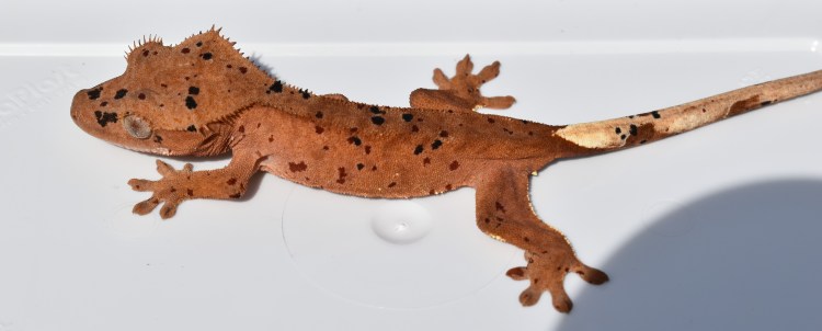Morph: superdalmatian with red and black spots and a red toe, light red/peachy based